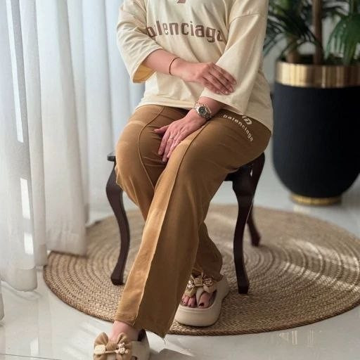 نام : ست بلوز شلوار کرم قهوه ای بالنسیاگا