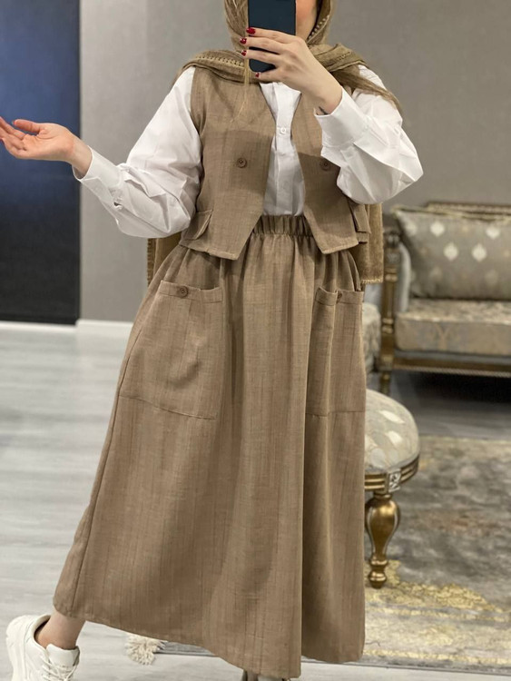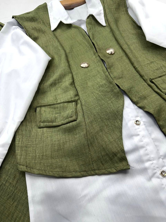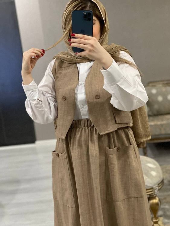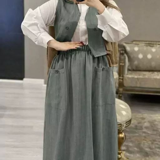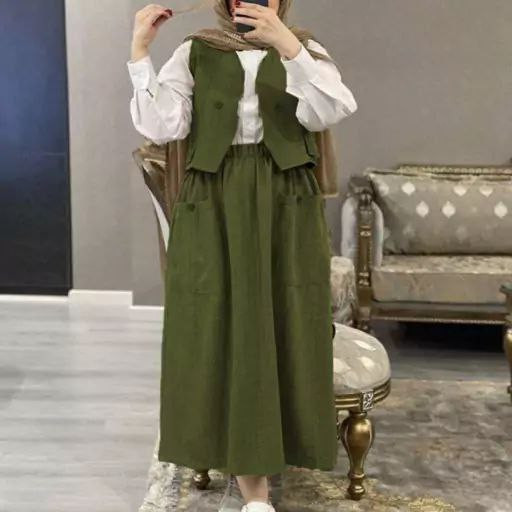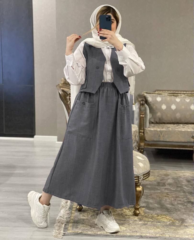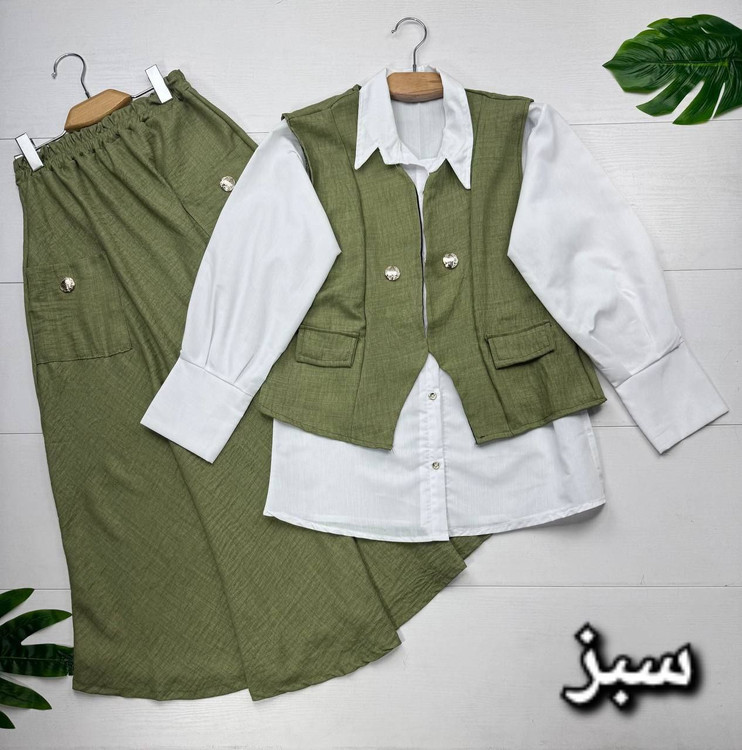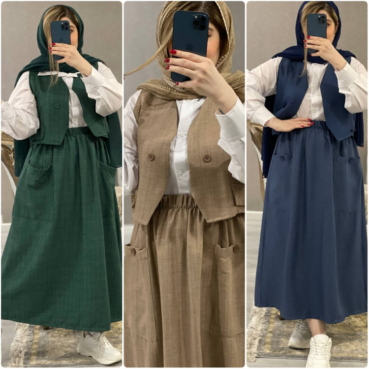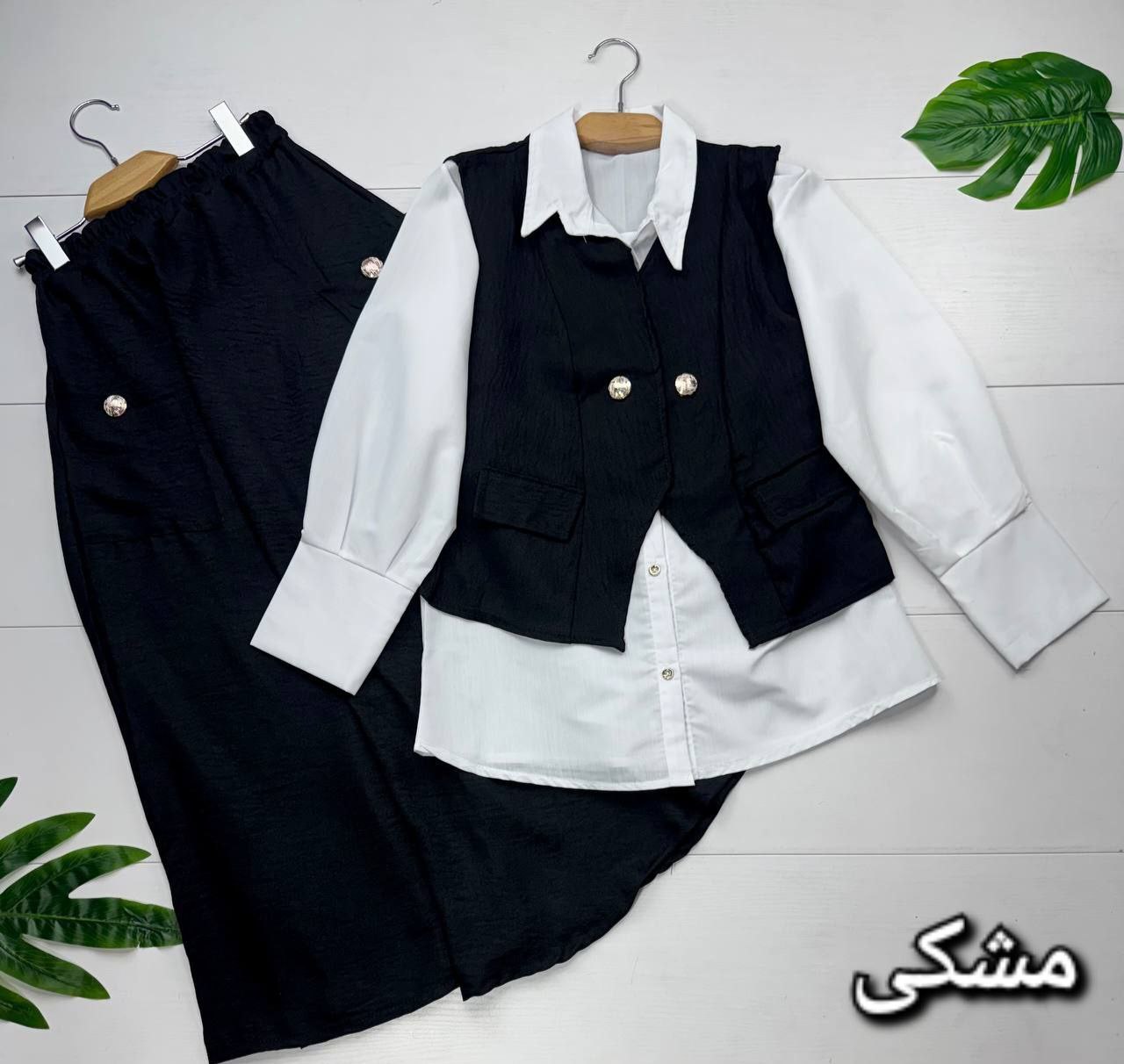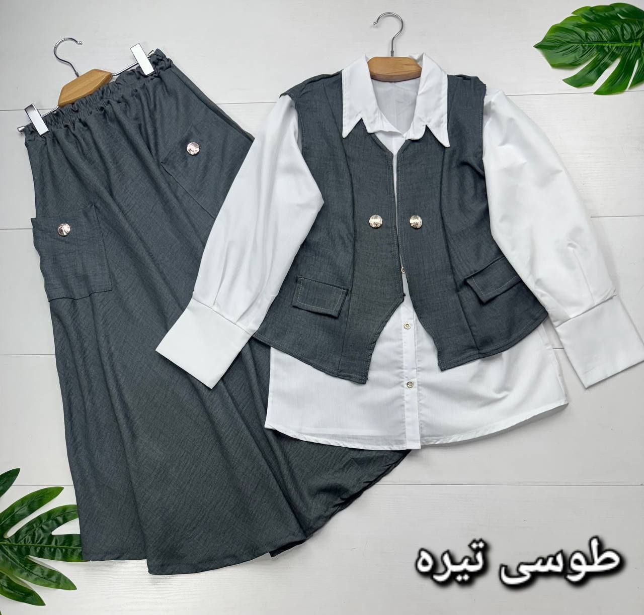 💞جنس : شومیز داکرون جلیقه و دامن شانتون