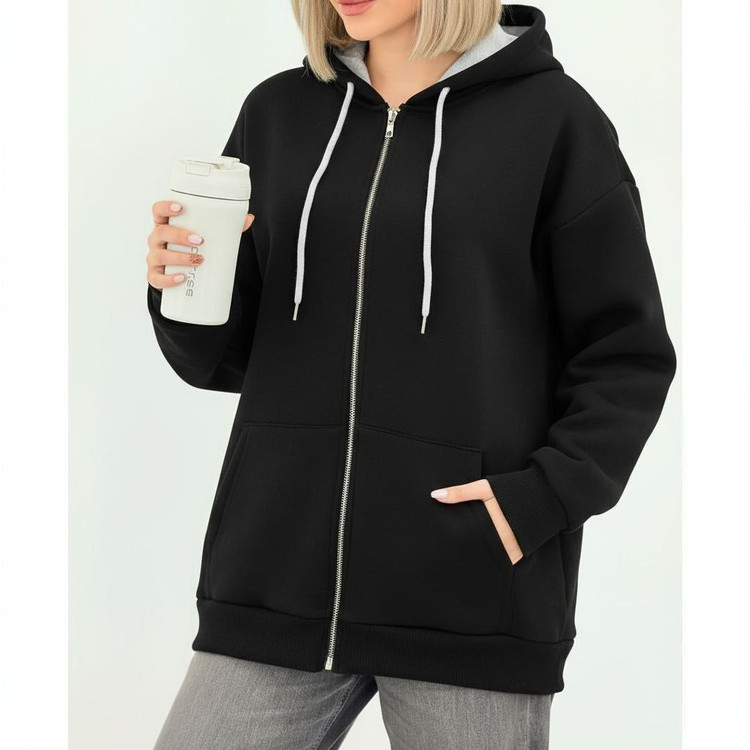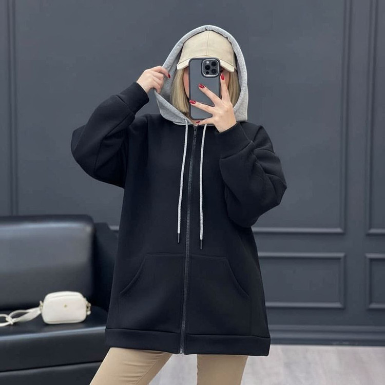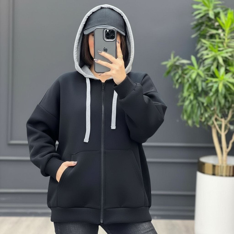 هودی مشکی کلاه طوسی
