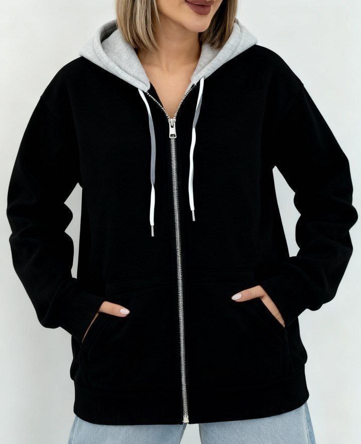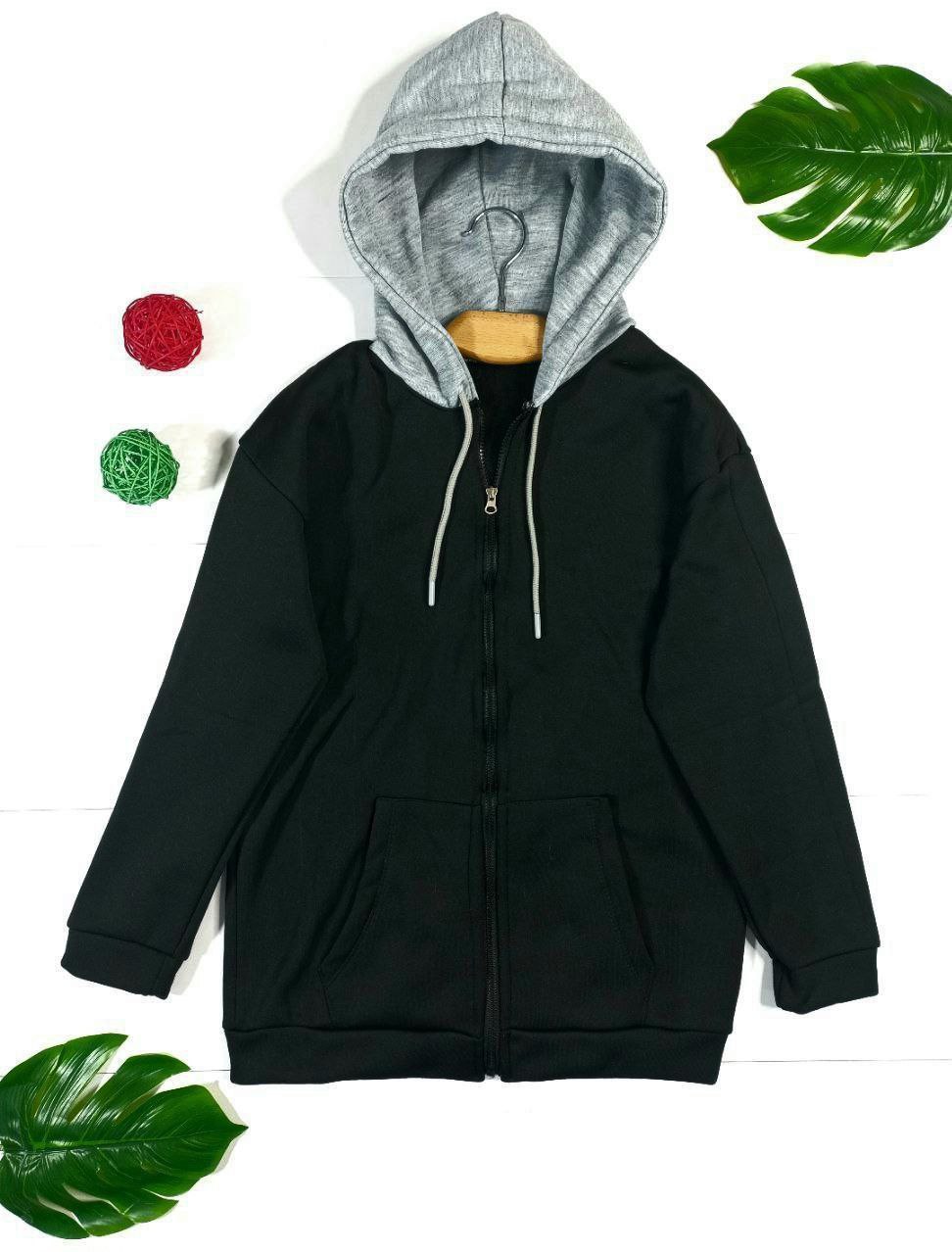 هودی مشکی کلاه طوسی