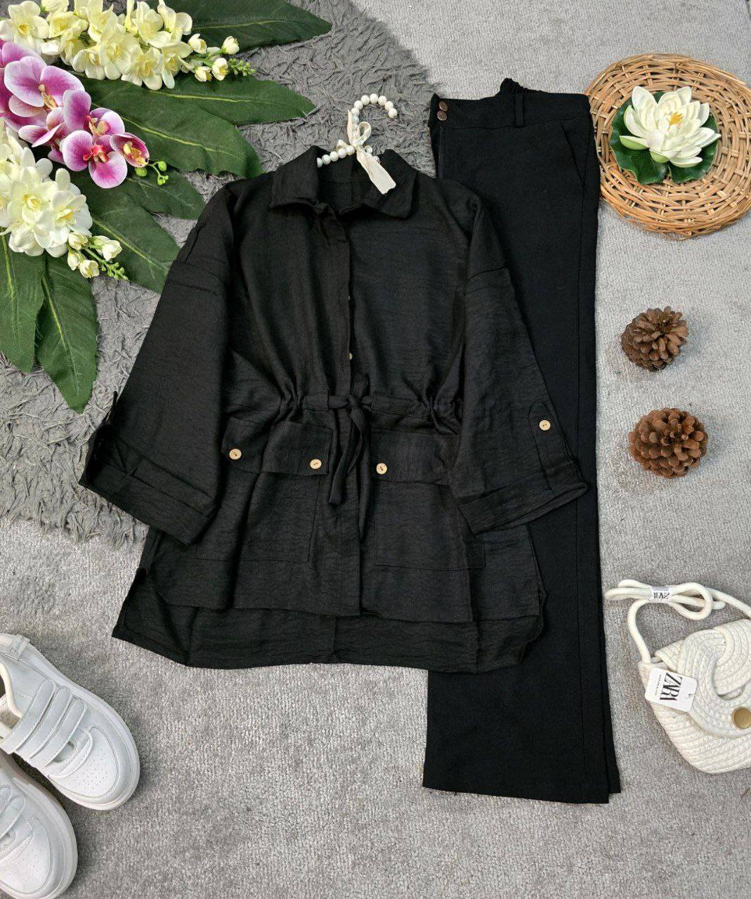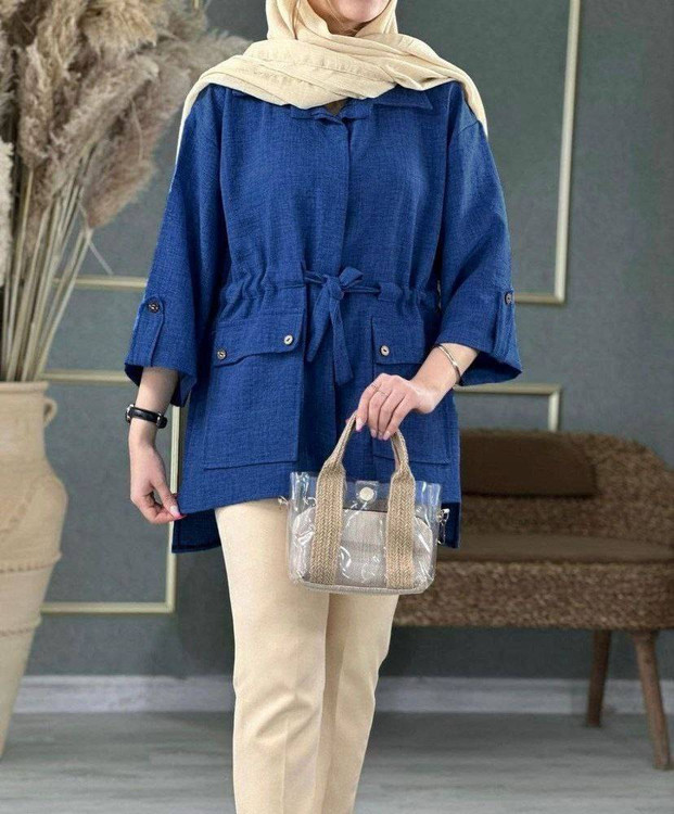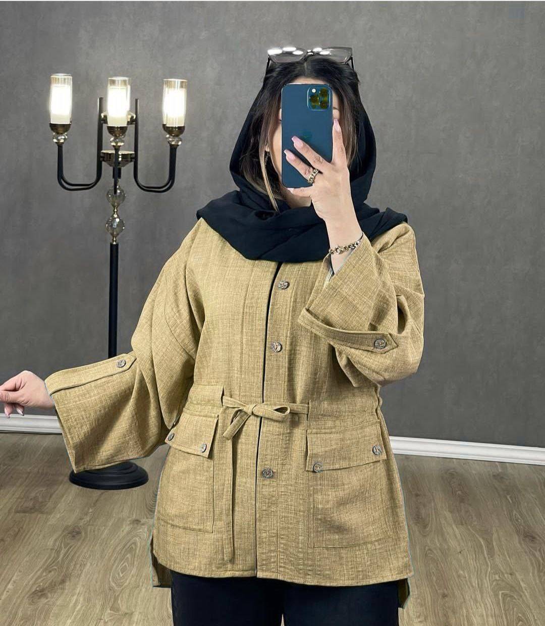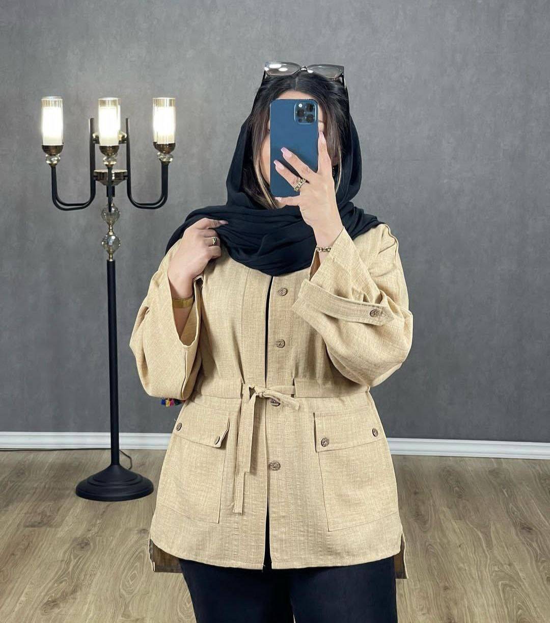 قد پشت ۷۷✅️ جلو ۷۱✅️ دورسینه 110 در حالت کیمونو ✅️ دورباسن 112✅️قد استین از یقه ۶۶✅️ کمر گت دار✅️ جیب کاربردی✅️ جلوی کار دکمه دارد✅